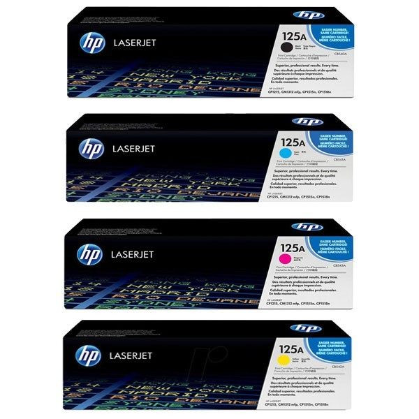 پک چهار عددی کارتریج اچ پی 125A جهت استفاده در پرینتر های لیزری رنگی اچ پی طراحی شده با کد فنی CB540A – CB541A – CB542A - CB543A میباشد که در چهار رنگ قرمز آبی زرد و مشکی می باشد.ظرفیت چاپ کارتریج 125A رنگی معادل 1400 برگ(سه عدد) و نوع سیاه آن 1600 برگ است یعنی توانایی آن را دارد که این تعداد صفحه A4 را با میزان پوشش 5 درصدی متن یا تصویر برای شما چاپ کند.که پرینترهای سازگارش CM1312mfp CP1515n – CP1518n – CP1215 می باشد.